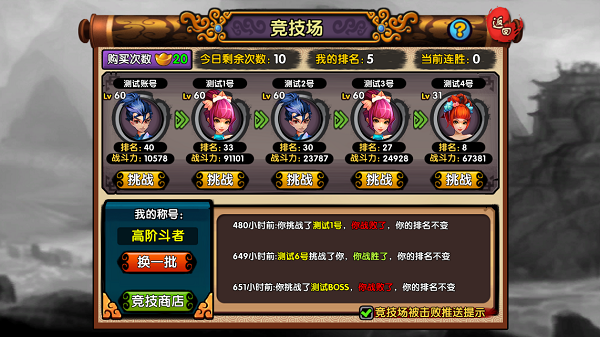 1.玩家挑战胜利,双方排名对调,可获得额外声望、银两奖励。