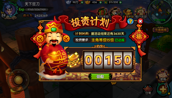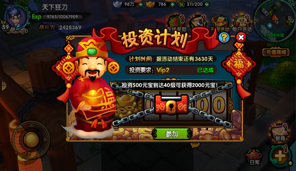 2.投资计划活动需要玩家先满足投资要求才可参加。
