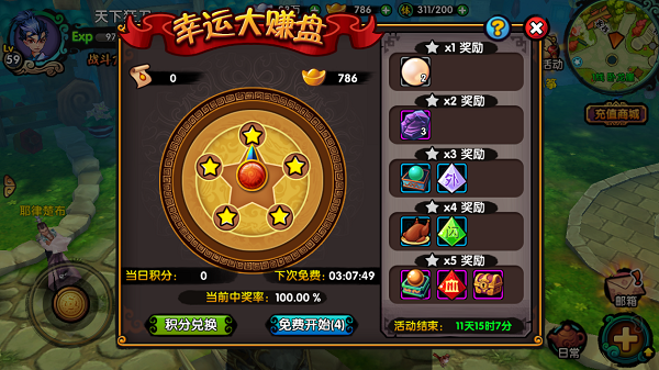 幸运大赚盘是玩家获得奖励的主要场所之一。转动获得的星星,可以兑换丰富奖励!