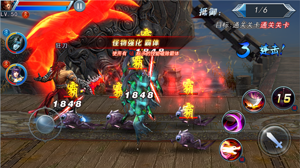 (1)游戏中的怪物具有霸体、闪避、扣血光环,三大功能;需要使用相应的角色技能应对,才能使得战斗更轻松;