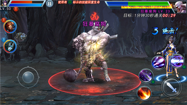 图6:当面对扣血光环怪物时,药师、镇魂中带有“回”的技能可回复生命