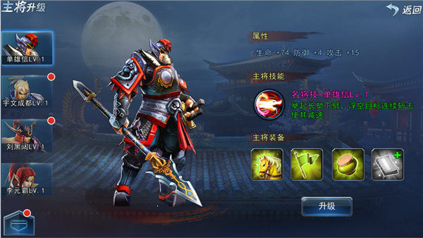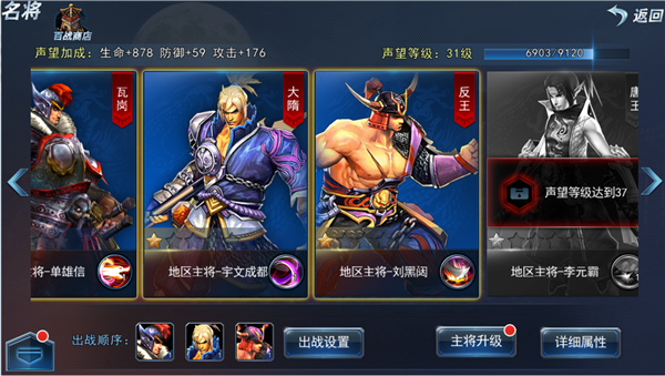 (3)升级主将需要名将装备,可通过百战魂讨等途径获得;