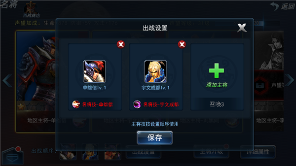 图6:可以选择出战的名将技能,以及他们的顺序,最多可选择3个