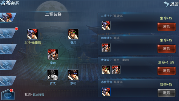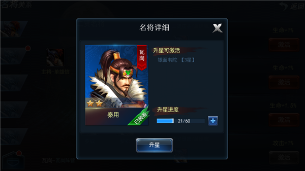 (1)收集每个阵营的辅将,并提升辅将的星级,可激活名将关系;