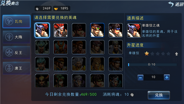 图4:升级辅将需要的英魂,可通过将魂兑换商店兑换获得