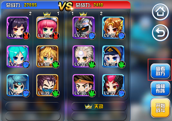 在次元擂台中,系统会根据玩家的排名随机筛选敌人列表,这个时候各位小伙伴们就要根据自己的战力合理的选择对手了。各位小伙伴可以通过拖拽左侧的列表来选择敌人,在选定敌人后,点击敌人就会进入我们熟悉的布阵界面,小编发现在战前布阵的时候我们可以查看地方的阵容搭配,这样的话就可以根据对方的阵容来决定自己的阵容搭配,从而做到知己知彼百战百胜。