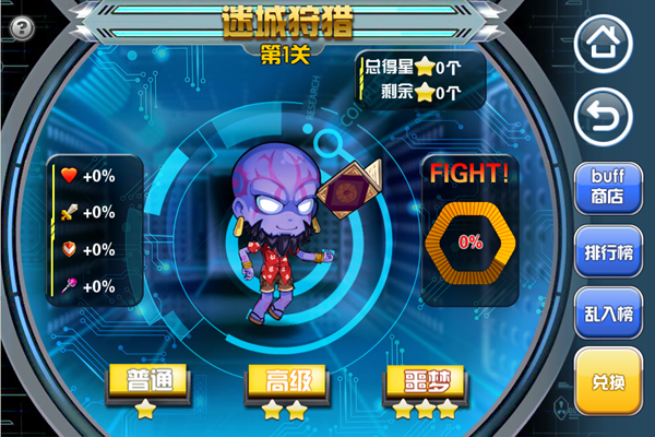 在《撸啊撸2》中迷城狩猎是一个危险的地方,在各位小伙伴挑战的时候会发现,每次挑战前都会有不同的难度等你选择,而针对自己的战力来选择合适的对手就是在迷城狩猎的一项很重要的能力了。在危险的迷城中,每隔20关就会清空一座城市的敌人,为了拯救地球而努力吧。第一个被敌人占领的敌人就是巴黎,先从这里开始吧!在打败敌人获得星星之后,还可以在buff商店购买buff来增强自身呢。不过越强力的buff需要的星星就越多呢,各位小伙伴们要努力啦。各位小伙伴们不用担心第一天打过之后第二天还要从头再来,经过小编的研究,只要三星通关到一定层数,在系统的开始会有一个一键扫荡功能呢,可以快速扫荡到上次三星通关的位置。是不是非常爽快啊。