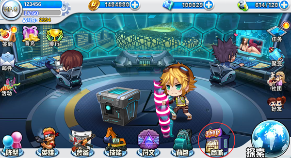 在《撸啊撸2》的主界面,玩家可以再下方的按钮中发现一个特殊的图标,那个写着商城字样的就是招募系统的入口啦。