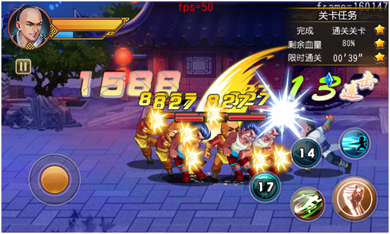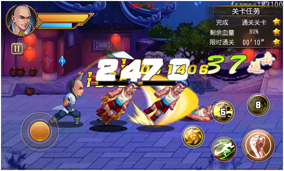 《天天格斗-精武之魂》游戏第三章的敌人类型和之前的关卡并没有太大的变化,但精英怪的类型会增加包括铁线拳、柔道弟子,最为直观的就是怪物的攻击力、攻击欲望以及攻击频率都会变得空前的强大。接连不断的日本兵分分钟让你空血倒下,动作灵活的柔道弟子频频出现,铁线拳弟子更是让你叫苦不迭,彪悍的外表下更是有着强大的战斗力让战斗威胁十足。