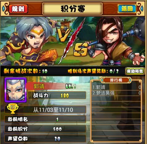 4.玩家挑战胜利时还可以获得2点挑战积分,挑战失败时可以获得1点挑战积分,积分达到要求时可以领取相应的声望奖励