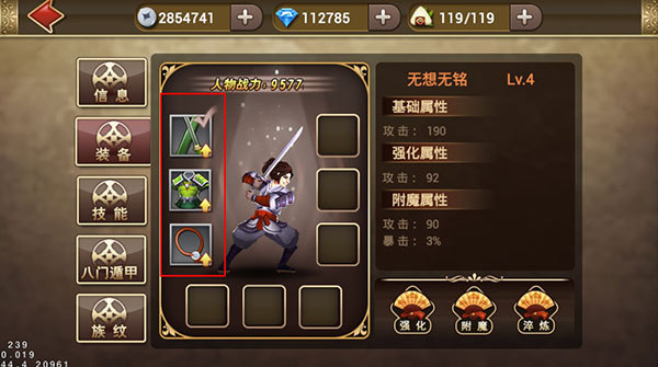 全新激斗动作卡牌游戏《斩武魂》即将诚意开测!华丽鲜艳又略带点古朴神秘的画面下充满着刀光剑影,与传统卡牌游戏不同的是该游戏以高策略重回合为玩法核心,卡牌不再单纯代表角色养成属性,而是代表战斗指令,无论是攻击、防御、回复,都由相应的卡牌提供指令做出支撑。在合适的时候点打出最关键的一张卡牌,往往可以逆转战机。真正的策略战斗!!玩家在使用卡牌的同时,还能通过角色属性养成,来完成自己的属性走向,即可攻防一体,又可暴力输出!!各位玩家通过操控战斗卡牌来赢取战斗,通过角色养成选择战斗属性,是不是非常有挑战性呢?那接下来小编给大伙说说装备界面介绍,请看下文:游戏中总共有2套装备系统,分别是普通装备还有噬魂装备,这里先给大家介绍一下普通装备吧。普通装备有3种类型,分别是武器,护甲,饰品,不同类型的装备加成的属性种类也不同,每件装备都可以进行强化,附魔,淬炼,详细介绍如下:强化:装备升级,增加装备的基础属性(每件装备最高强化至120级)(注:强化装备是有成功率的,装备强化等级越高,强化的成功率越低)附魔:赋予装备高级属性,其中包括暴击,暴伤,抗暴(每件装备最高附魔至30星)淬炼:装备升阶,使装备基础属性大幅度增加(每件装备最高可淬炼14次)