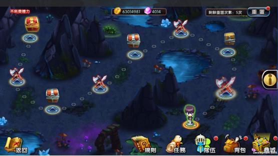 (4)小鬼矿区:是可以获得钻石途径之一,这个活动跟金币绿洲有点相似,不过这个是需要跟小鬼战斗的如果玩家用的步数少并跟小鬼战斗获得胜利的话,收益可是很可观的;相反如果用的步数多或者战斗失败那收益会随之减少