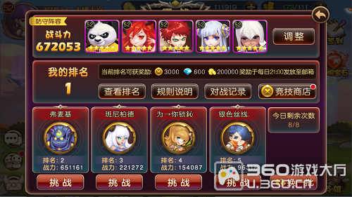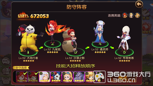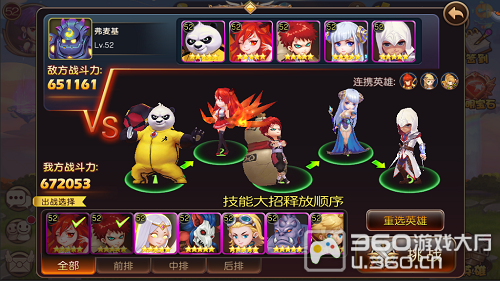 选择对手之后,就可以进行激情四射的PK了,但在这之前,需要确定出场英雄,调整技能释放顺序。这些对于战斗结果,会有决定性影响。