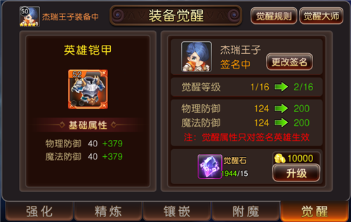 进行觉醒的装备分解后返还全额消耗的材料,抹掉觉醒属性需要消耗钻石,可以重新佩戴给其他英雄进行重新签名即可激活觉醒属性。