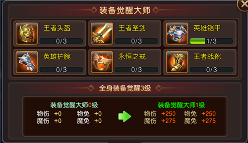 可通过消耗材料进行提升觉醒等级,觉醒装备还可以获得套装属性,觉醒等级越高激活的套装属性越高。