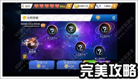 每到一个星球探索得到的碎片数量是不相同的,有多有少,也有可能会出现暴击或者大暴击哦。飞船在探索过程中也不是一帆风顺,也会出现各种状况,如果飞船出了问题,就会返回维修,再重新从第一个星球开始探索了。比如当探索完第二个星球后,飞船被吸入黑洞。新飞船启用,那就得从新开始探索。当然也可以进行10次的探索,可以节约探索点的消耗。