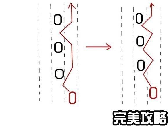 从图中,我们看到,这两种都不会断了combo,但是左边只有2连,右边却能达到3连。刚开始练习那会,我一般都是左边超车求稳妥怕撞车,但是现在炉火纯青以后,必须追求超车密度,就要做到右图,即使是很短的间距,也要去试。