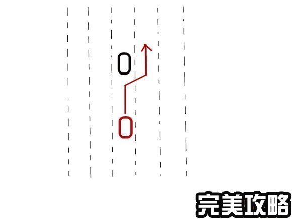 图上就是满超,就是玩家车子与目标车辆持平,待靠近一定距离,迅速偏移达成超车。这种招式一般发生在目标车辆稀松,有足够超车距离的情况下,稳妥超车。