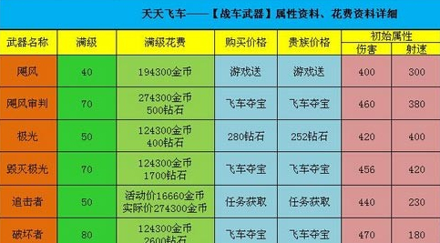 天天飞车经典模式会有个直升机模式,这里面也是需要我们的车辆有一定的战斗力的,今天千城为大家带来的是战车全武器消耗花费大全,希望大家能够喜欢。