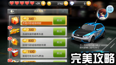 (2)、第2个道具,“迅速加速至最高车速”,价值300金币