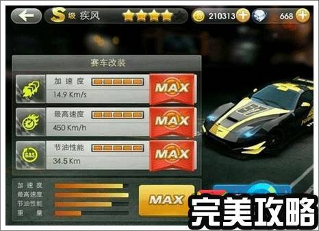 获得条件:疾风S车在车库中是没有的,是需要玩家们升级疾风A车才能获得的。
