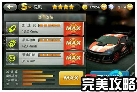 锐风属性:加速度13.2Km/s、最高速度420Km/h、节油性能31.4Km