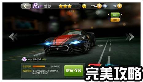 RA级魅影:加速度423Km/h、加速度12.8Km/s、节油效率30.5KM。剩下的是一些R级车数据(金币加成+5.5%、重量800.0KG),由于小编还未升满级,不过已经不重要了。