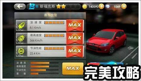 赛车数据:最高加速度:8.1Km/s、最高速度:366Km/h、节油性能:22.4Km