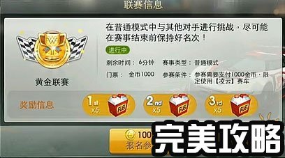 大奖赛分为青铜联赛、车神降临、黄金联赛三个赛事,不同的赛事有不同的奖励。