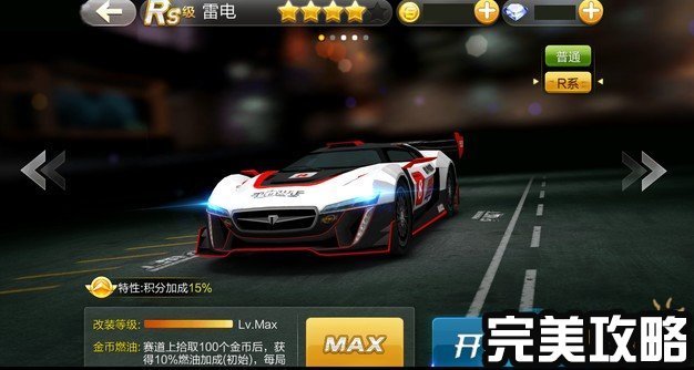 赛车特性:赛道上拾取300个金币后,获得燃油10%,每局一次。