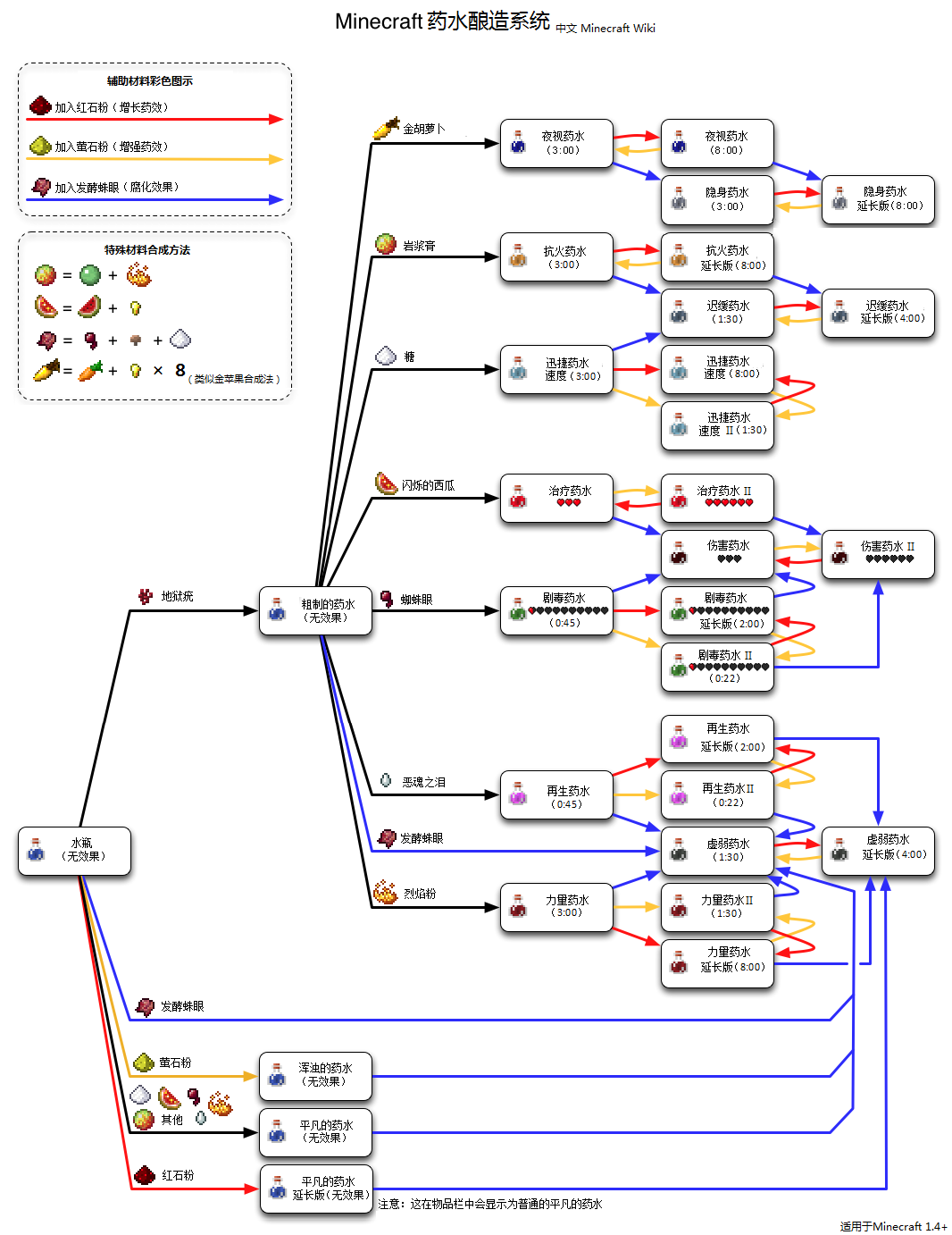- 力量药水 + 萤石粉= 力量药水 (力量药水II 1:30)