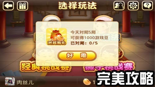每天对局5局就可以通过游戏屏幕左上方的礼物标识中获得1000个欢乐豆。
